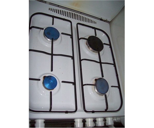 Der er låge på komfuret så gasblussene kan skjules væk.
