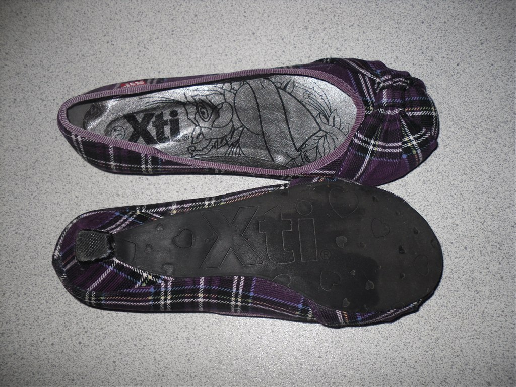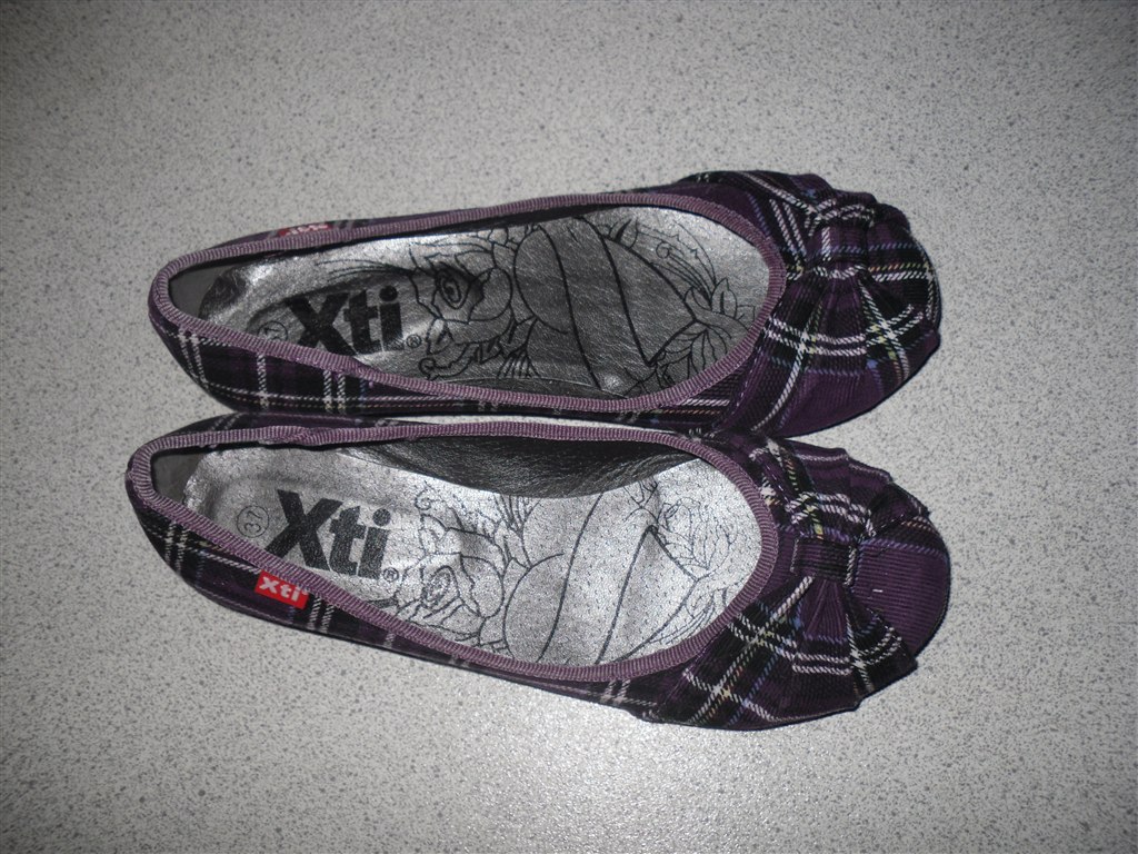 1.Et par lilla/ternede ballerina sko med en lillebitte hæl. Str. 37. Er brugt højest to gange, dog er hælen en smule slidt. Den er slet ikke nødvendigt at skifte endnu. - Det mørke der ses på billedet er blot fugtighed efter den våde klud