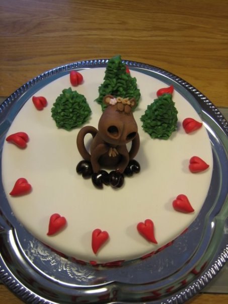 Den sidste lavede jeg i 2006 på kagekursus i Rungsted.. min allerførste fondant kage... og dem som kender mig ved at jeg ikke gider udstukken pynt, så mens de andre satte blomster og stjerner på deres så prøvede jeg at modellere for allerførste gang... Stolt blev jeg faktisk da jeg året efter så en efterligning i deres vindue... selvfølgelig meget flottere, men ellers helt magen til