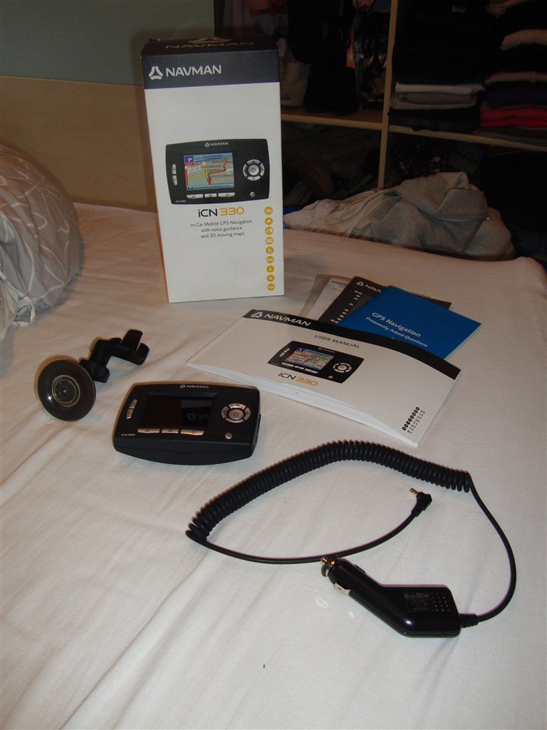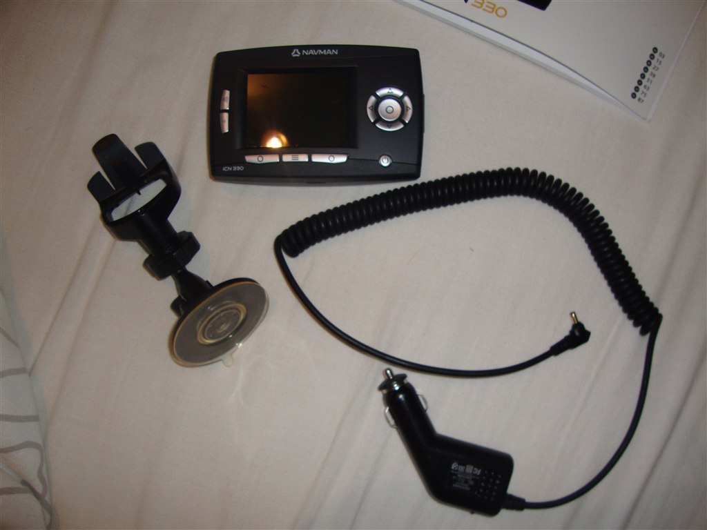 Der medfølger: Brugsanvisning, holder til bilen, oplader til bilen.