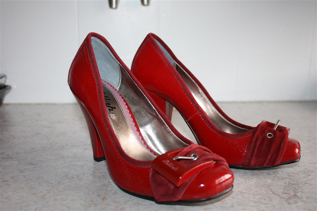 Da jeg ikke har brugt de røde - billede 1 (nypris var 600,-) og de sorte på billede 3 er kun brugt én gang (kan dog ikke huske hvad jeg gav for dem   Havde jeg tænkt mig min. 100,- pr. par