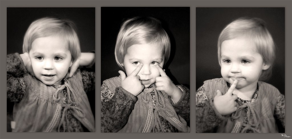 Er det "ikke se", "ikke høre" og "ikke tale" på de små billeder?
