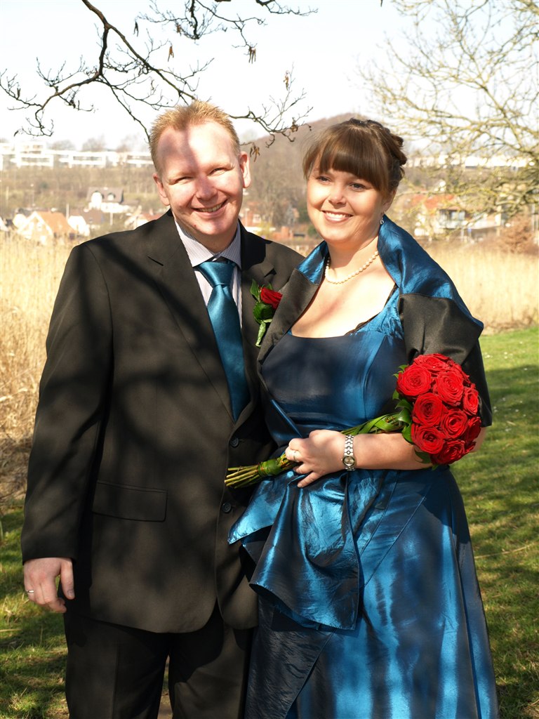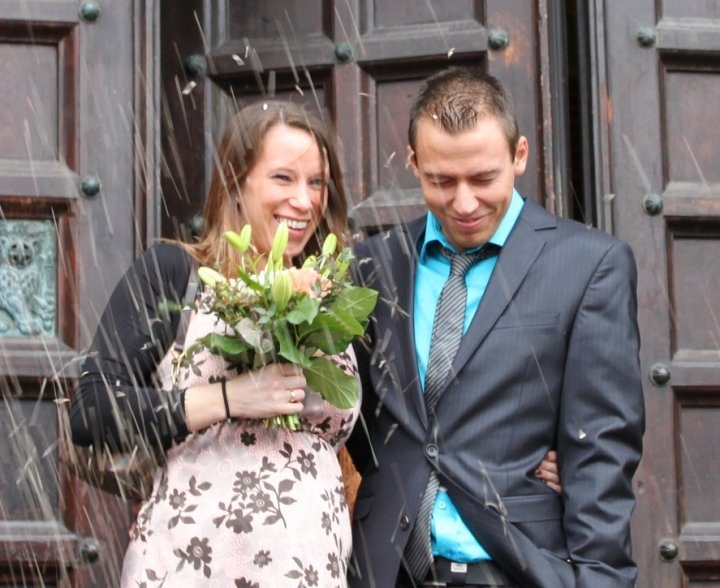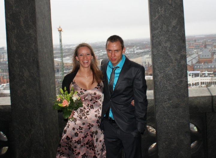 Vi blev viet i sommers, mens jeg var gravid. Da vi havde fået kontakt til ham, der skulle vie os gennem min mands fætter, blev vi viet helt oppe i Rådhustårnet inde på Københavns Rådhus. Det var en fantastisk udsigt (desværre var vejret ikke helt med os).