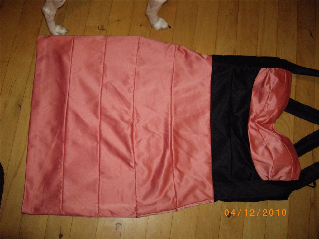 kjole i koral og sort. med stropper der krydser på ryggen. str. xs