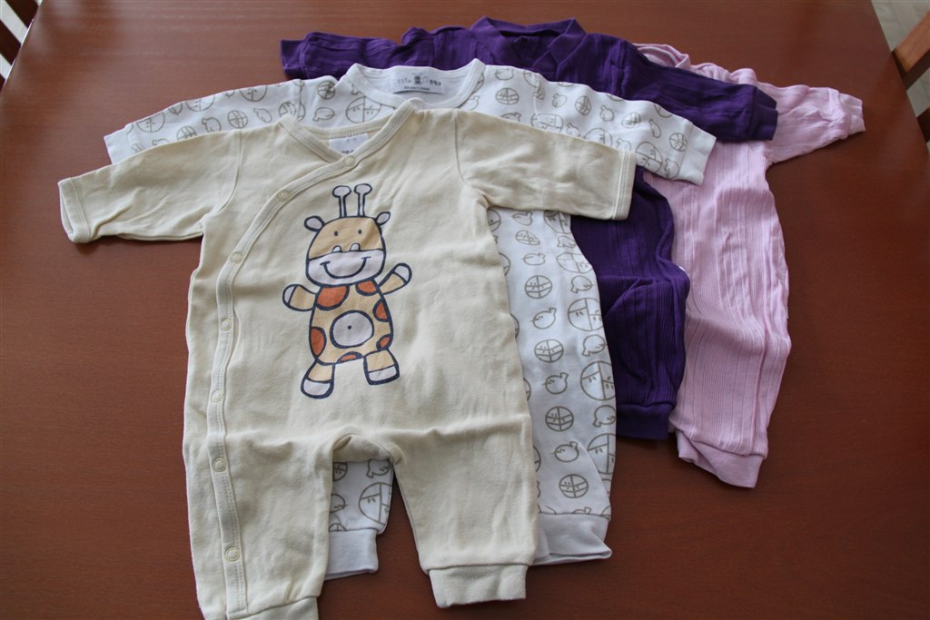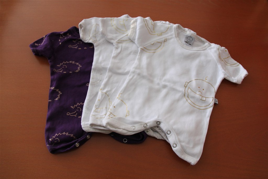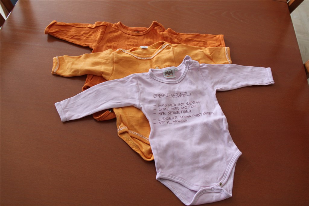 Billede 3: 4 heldragter fra IdaT med korte ærmer og korte ben - gode som bobyer - (den ene er falmet ret meget i guldtrykket) AB - 40 kr /stk for de 3, den famlmede følger med uden beregning