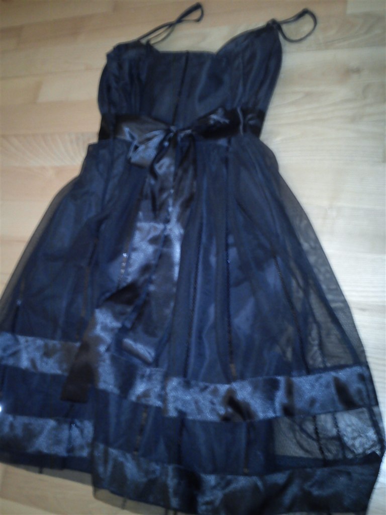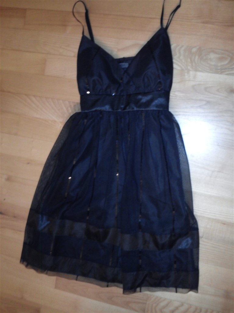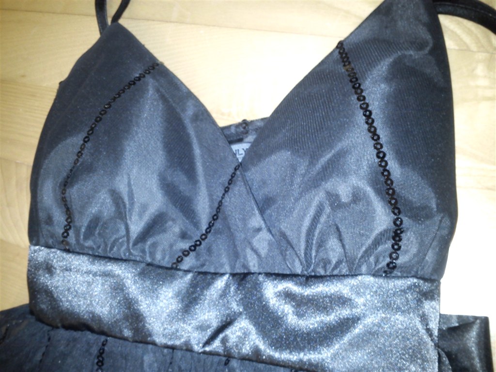 Den har sorte palietter ned langs siden og en sløjfe i livet som man kan binde bag på.