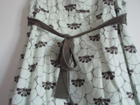Rigtig fin ballon kjole fra Pompdelux. Selve kjolen er i virkelig fin stand, ingen huller, pletter eller anden tegn på slid. Desværre har de brune bindebånd kommet til at virke lidt slappe eller slidte, men det er ikke noget man ser, når de først er bundet.