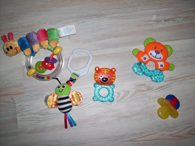 Sesse89 skriver: 3 bide ringe der aldrig har været brugt1 rangle Og en lamze figur til autostol m.m Byd