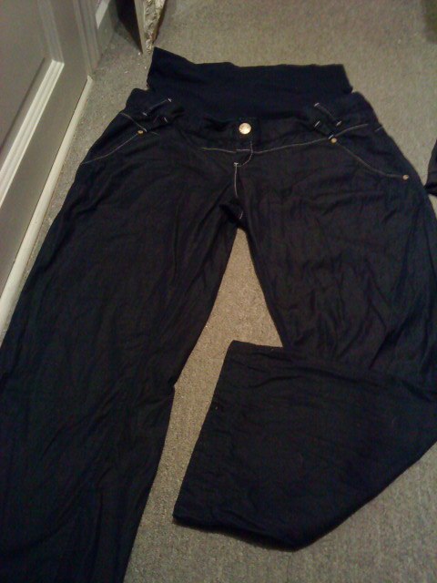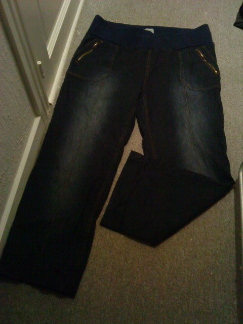 Nr. 3: Mørke "Mamma Liscious" jeans. W=33, L=32. Brugt ca 3 gange. Nypris 400 kr. Byd.
