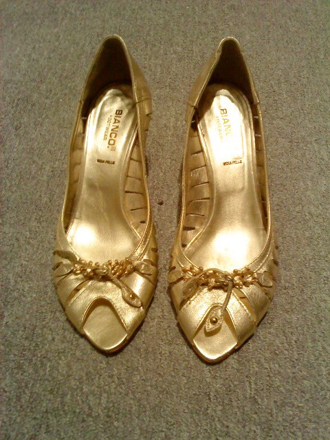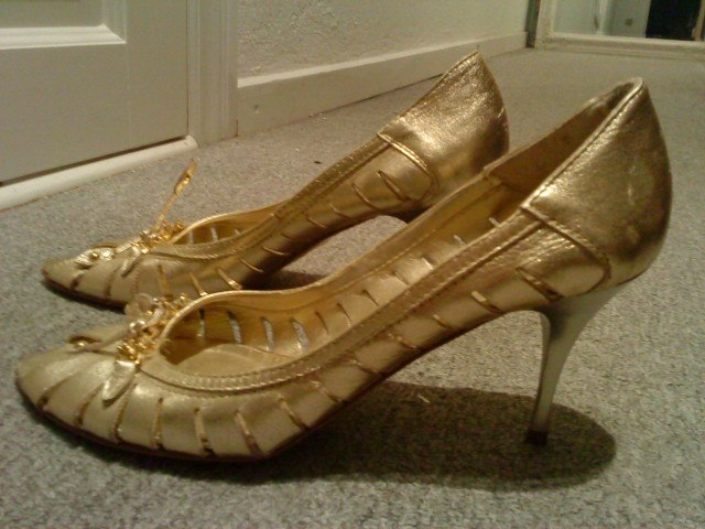 Nr. 4: Bianco Guld sko. Str. 40 Virkelig flotte med sten og meget feminine. Brugt en gang. Nypris 900 kr. Byd.