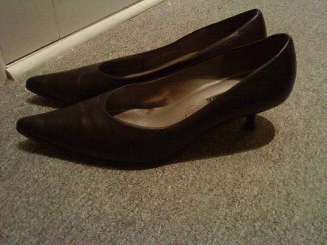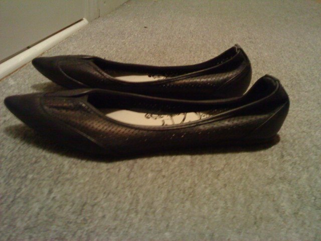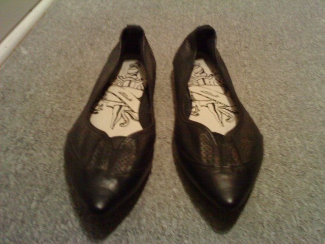 Nr. 8: Flade spidse sko. Str 40. brugt få gange. Nypris 499. Byd.