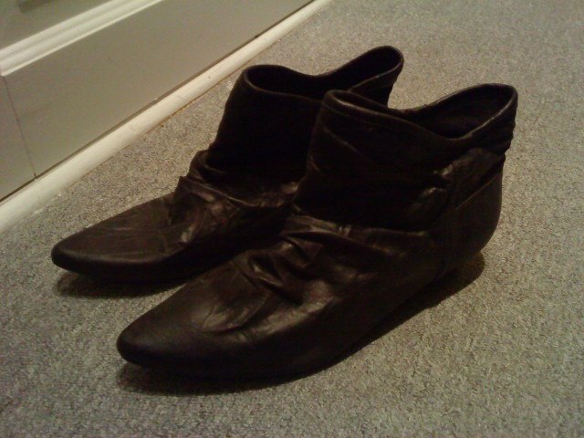 Nr. 14: Støvler i læder med fald ned effekt og spids snude. Brugt få gange. Nypris 599 kr. Byd. Str. 40.