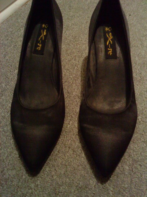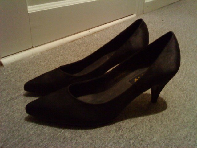Nr. 11: Spidse satin sko. Aldrig brugt. Str 40. Nypris 300 kr. Byd.