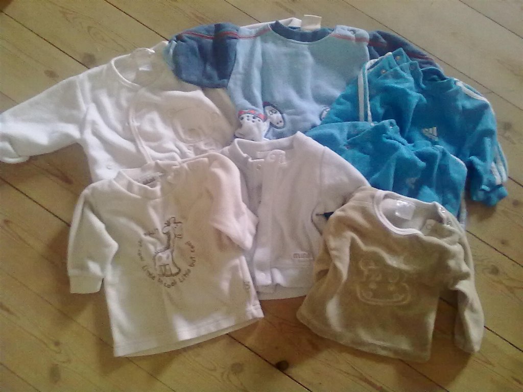 Billed 17: En masse bluser 2 Adidas bluser str 68, 1 str 50 Mads& mette, 1 blå med dino str 56 mærket Fixoni, 1 med Hippo og Co str 56, 1 fra H&M str 56.