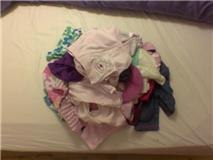 obs: Helt ny sparkedragt str 68 er også blandt tøjet i sækken