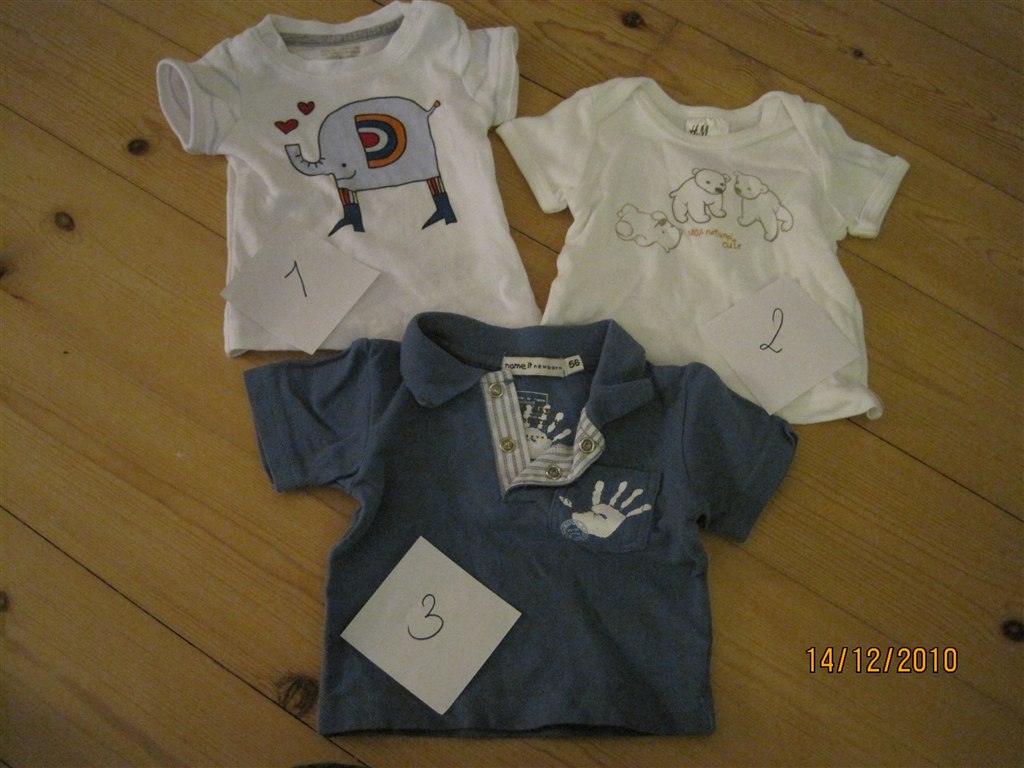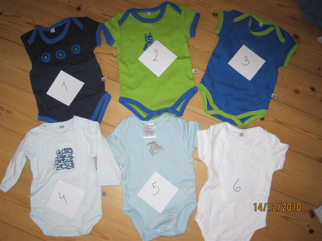 Billede 3: 1,2,3,6 (3 farvede bodyer og en hvid)