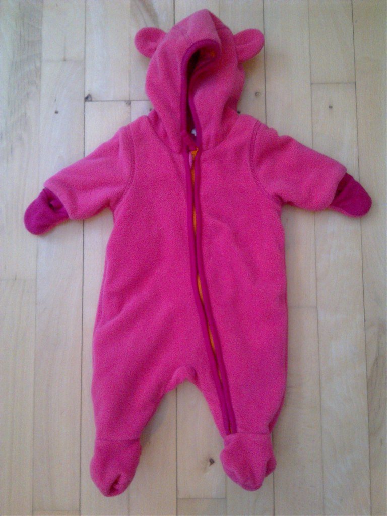 Sød fleecedragt til prinsessen fra H&MStr.: 50Farve: pinkStand: brugt i under en mdr. - næsten som nyPris: 149.-Pris hos mig: 100.- (jeg betaler porto som brev)