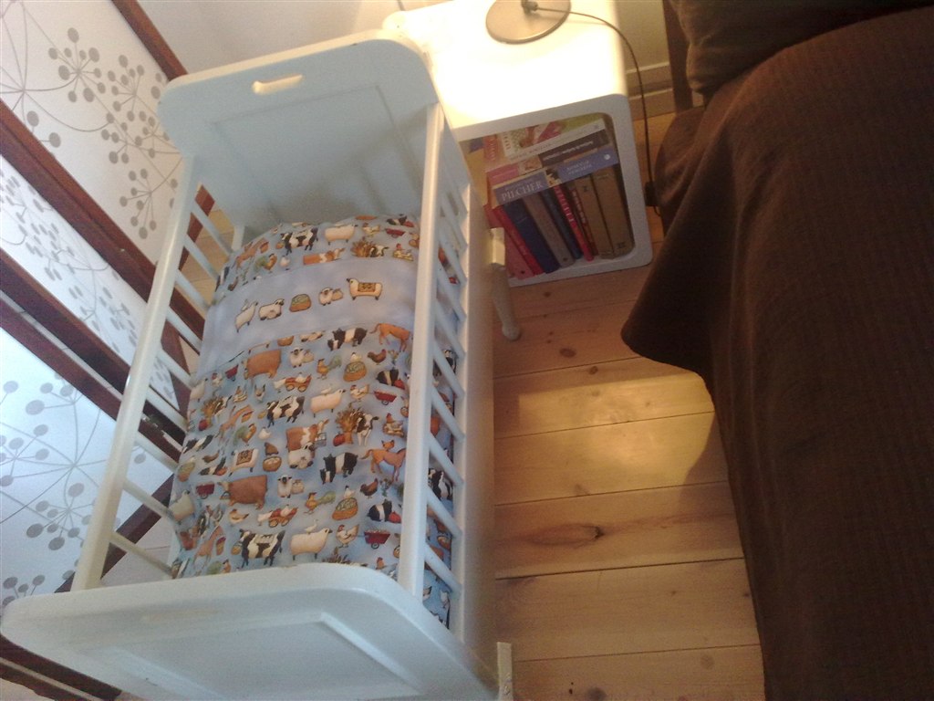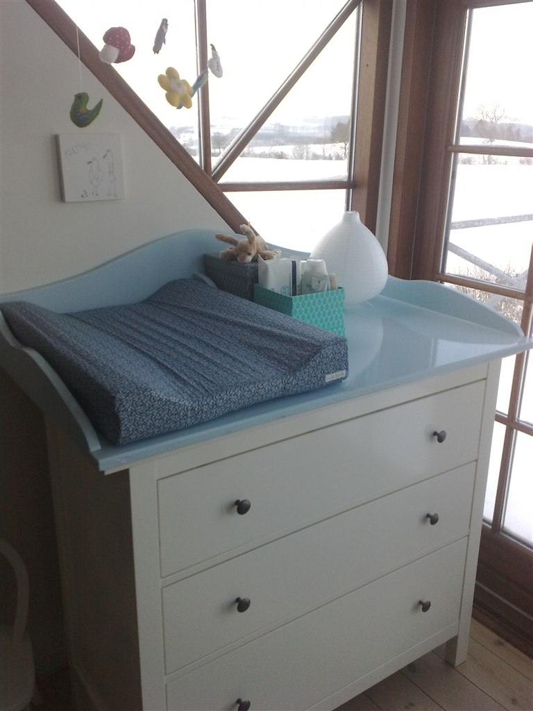 Så fik vi hentet og installeret puslepladen og den lille vugge-seng.