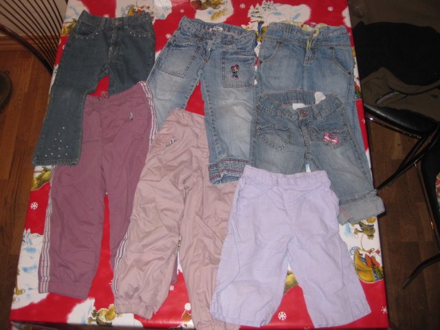 5 par bukser (en med mini mouse) og 2 par knighers (staves)