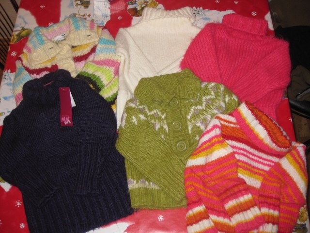 6 tykke trøjer i forkellige farver &m (den ene har stadig mærke i, den er fra mads og mette)