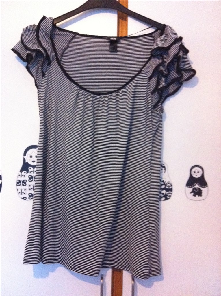 Stribet top med fede ærmer, str. L , H&M - aldrig brugt!