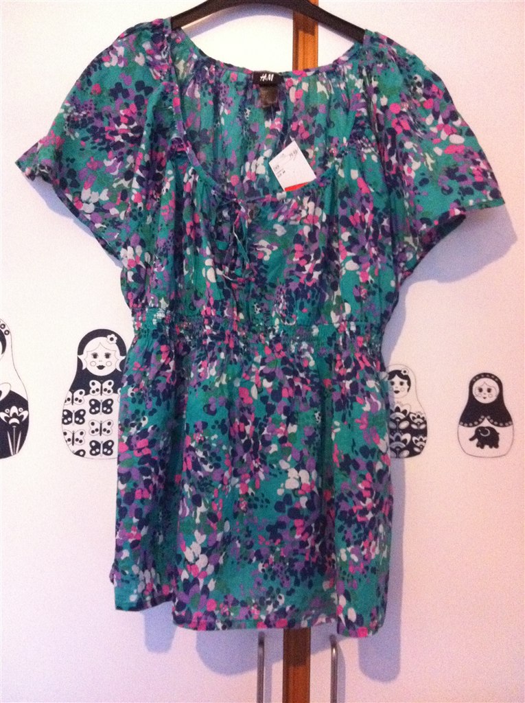 H&M blomstertop, str. 44, aldrig brugt (stadig med mærke)