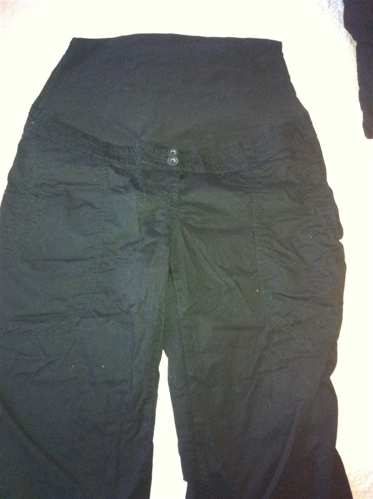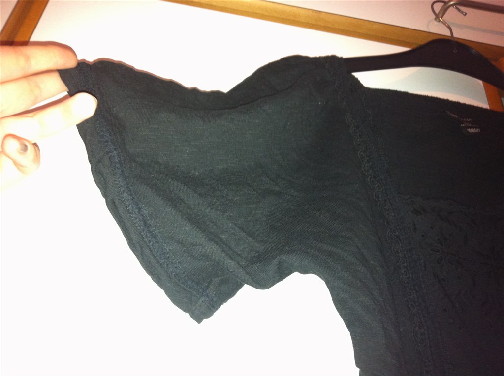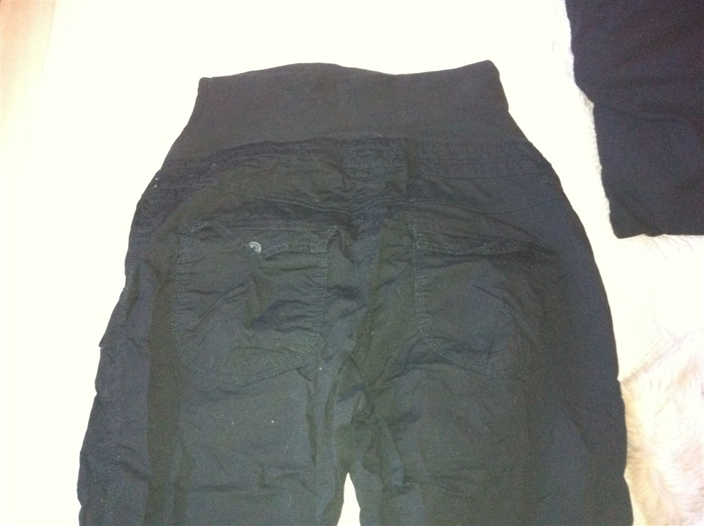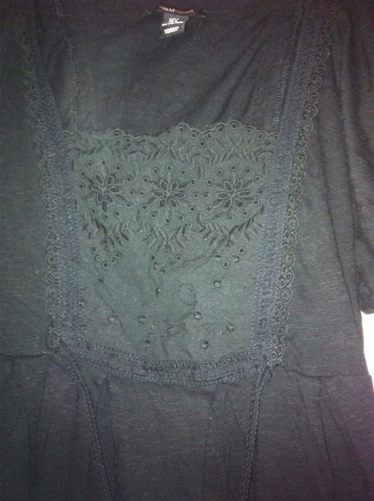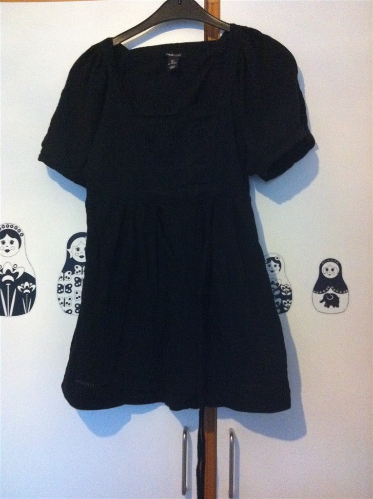 H&M ventebluse, sort med masser af detaljer, f.eks. bindebånd om maven, str. L, som ny