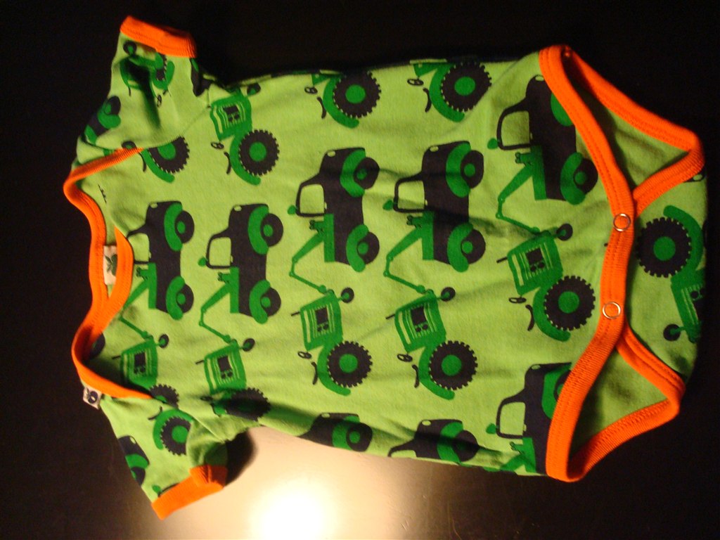 Grøn småfolk body med traktorer str 62 (Som ny)