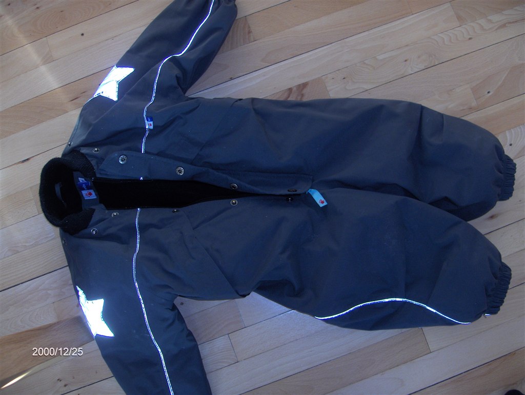 Molo flyverdragten er brugt og det ses med lidt fnuller i ribkanten, på refleksstjernerne på arme og ben samt ved ærmerne hvor der er lidt slid også, ellers er den super fin og uden huller!! Den er str 86