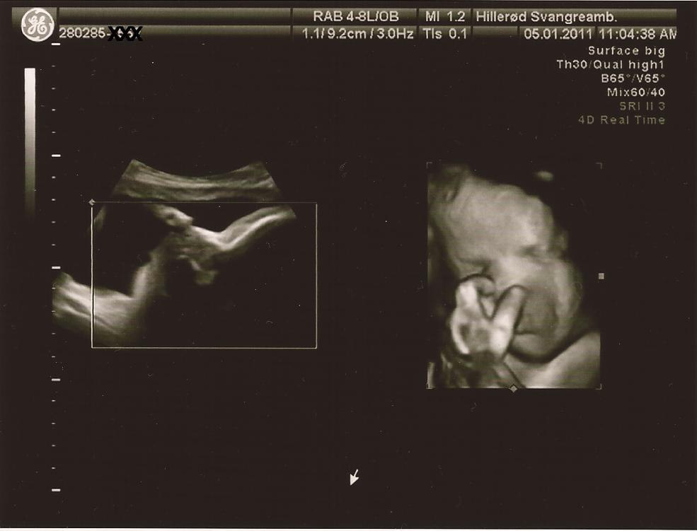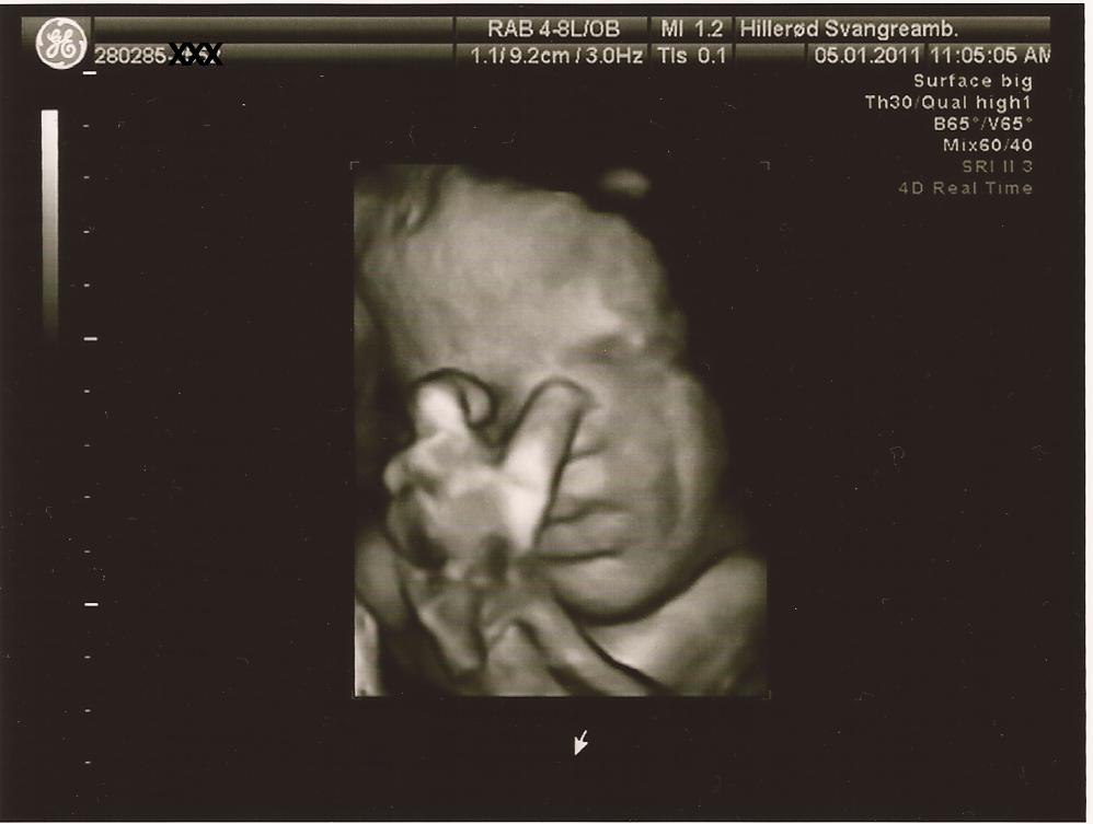 Så er der update. Der var ikke noget at være bekymret for. Med en kampvægt på anslået 2.937 gram er hun 2 % over en absolut gennemsnitsbaby på dette tidspunkt. Dejligt. Og sørme om hun ikke lige slog over i 3D, så vi kunne se at der var sul på kroppen. Det troede jeg ikke de havde mulighed for på det offentlige. Hun var ret overrasket over kvaliteten på 3D, da det normalt ikke er så godt så langt henne i graviditeten. Jeg har desværre ikke mulighed for at ligge billeder ind nu, da vores all-in-one printer er gået i stykker, men har forhåbentlig mulighed for det snart. Hun lignede forresten sin far