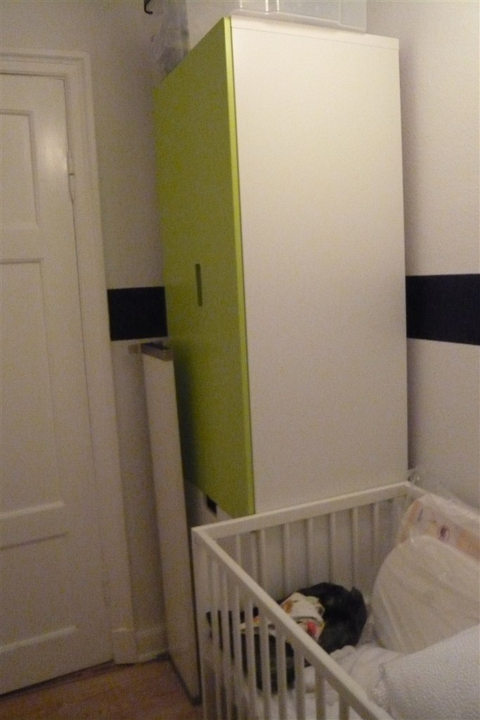 Som det fremgår, er det ikke verdens største babyværelse vi har at operere på, men altså ... radiatoren virker, vinduet kan lukkes og åbnes, gulvet knirker ikke og der er plads til seng og skab