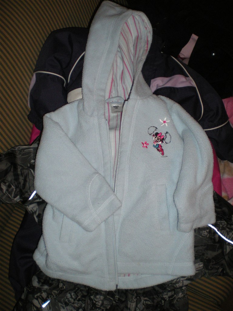 MoarJ skriver: Begge ting brugt, meget pænt. Billede 1: Fleecetrøje 50,- Billede 2: Fleece/Bomulds jakke 50,- Billede 3: Sommerjakke m/Mickey Mouse 50,-