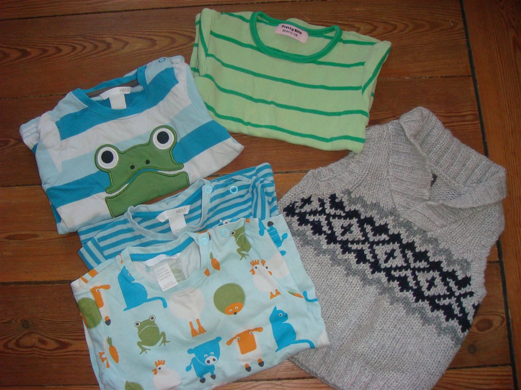 Blå/lyseblå stribet t-shirt fra H&M str. 86