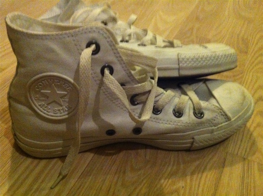 1. Hvide Converse (brugt meget lidt - så gode som nye) str. 38 pris fra ny 700 ,- sælges for 350 kr