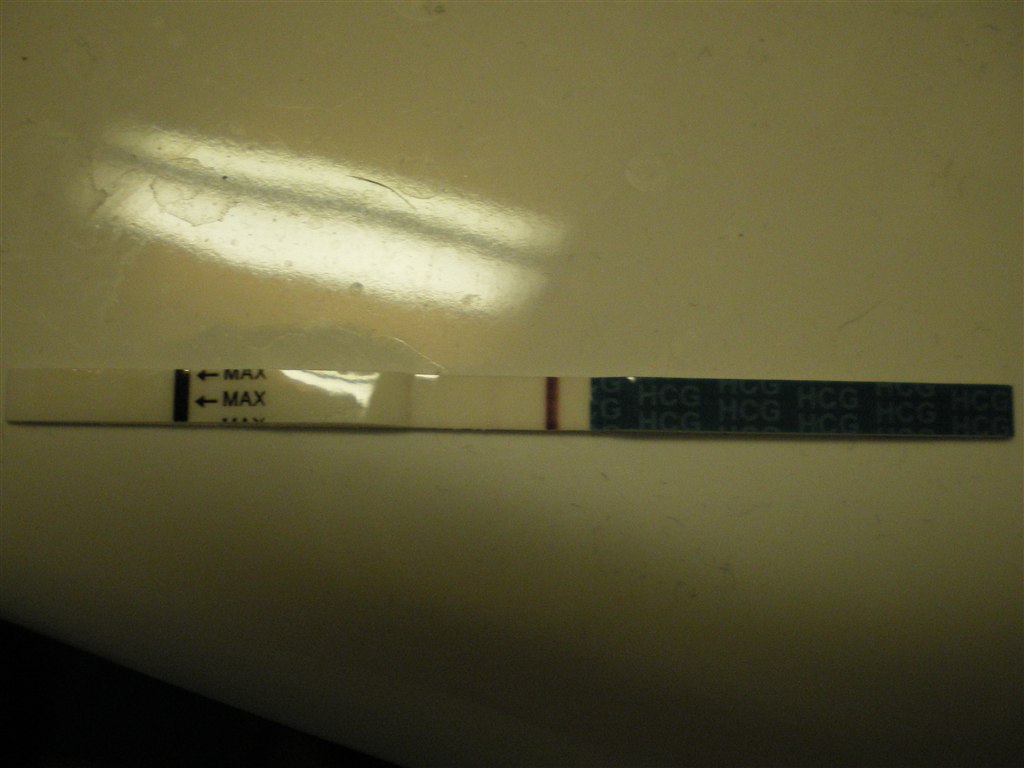 Jeg tog testen, og gik i bad og da jeg kom ud af badet så jeg den tydelig kontrol streg, plus en meget svag streg. Jeg har taget almindelig billeder og negative billeder, jeg kan ikke lige få dem på computeren, selvom jeg prøver...