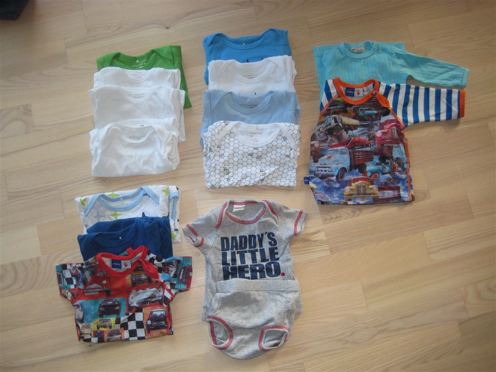 Kortærmet bodyer. Øverst ensfarvet, nederst med mønstre.