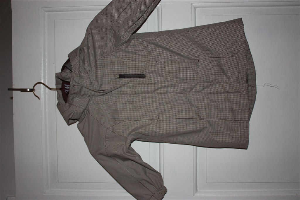 Billede 1+2+3: H&M brun og hvid-ternet regn/forårsjakke i str. 92. Pris 100 kr. >> 50 kr.