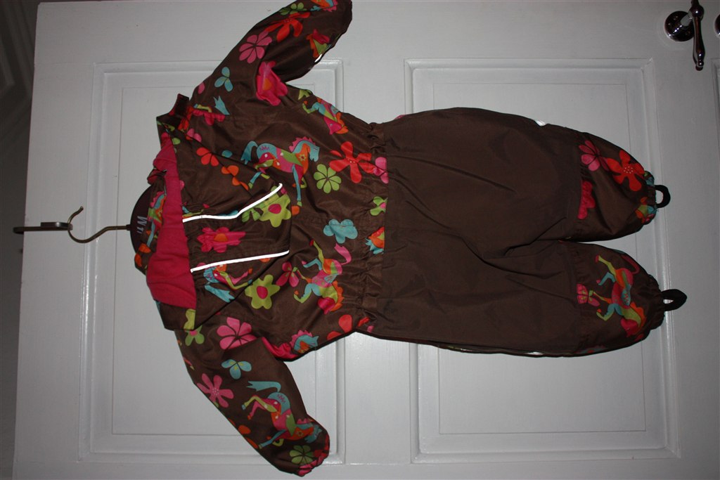 Billede 11+12: Flerfarvet flyverdragt fra Me Too i str. 80. Pris 200 kr. (Stort set ubrugt) >> 100 kr.