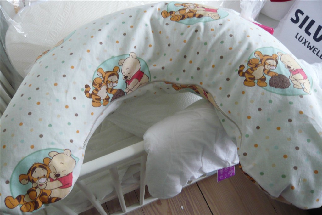 Nåh, men der er lige lidt dugfriske mavebilleder, billeder af lilleputtens værelse, og af det flamingokugleshow jeg havde gang i da jeg lavede ammepude, samt af det endelige resultat!