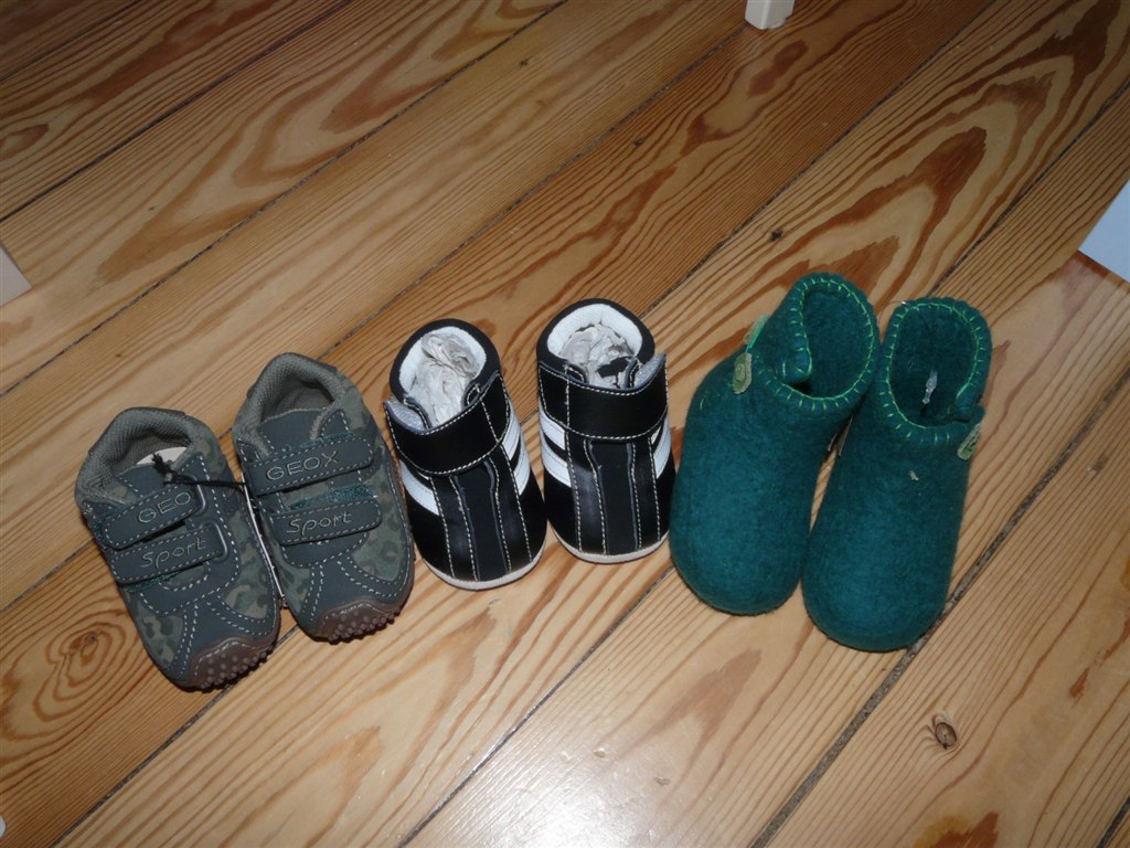 myr81 skriver: Tre par ubrugte sko. Georg yderst til venstre str. 18, sorte kravlesko fra Vincent str. 16-17 og lækre filtsutsko fra clemente copenhagen.