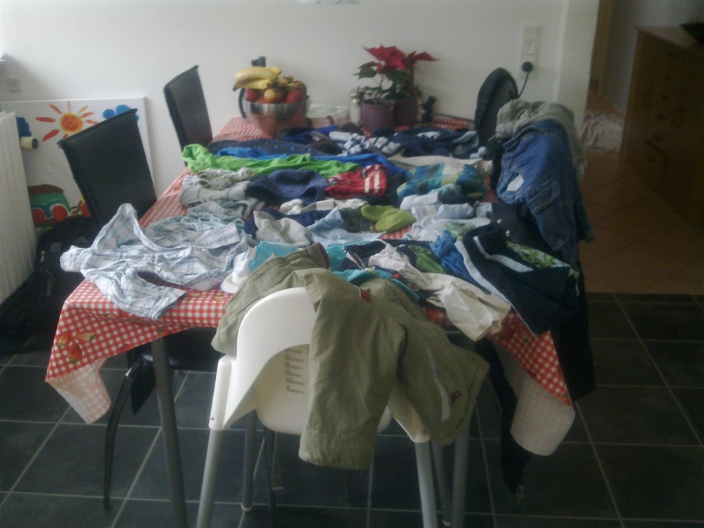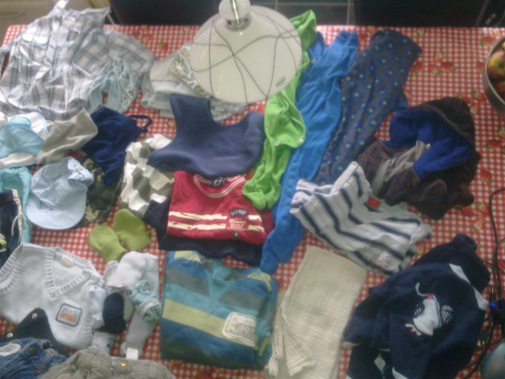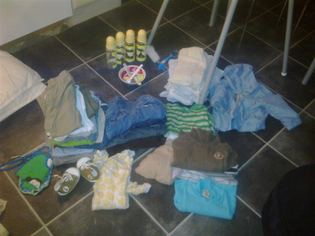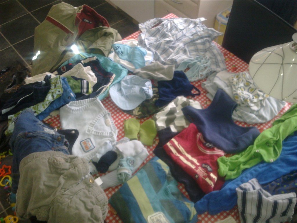 De tre natdragter er solgt den i grøn,blå og blå med grønneprikke men der er komme en del andet tøj i sækken + en pose flasker emd hvis man er int tallerkerne er solgt også