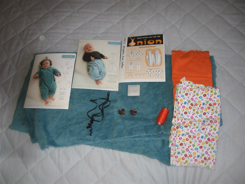 - Stof til Minikrea heldragt med hætte str. 62-68