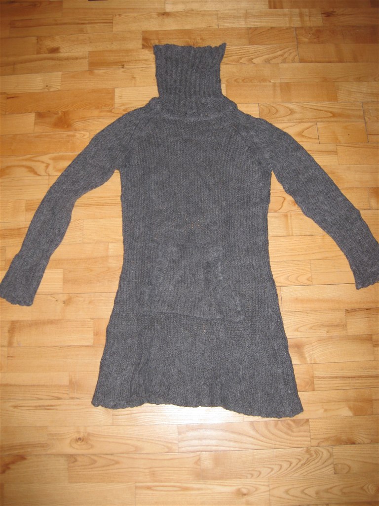 Billede 13: Mørkegrå lang striktrøje med lomme. Fra Vila, (acryl/alpaca) str. L, men meget lille i str. Og svarer nærmere til str. S. God men brugt. Sælges for 45 kr.