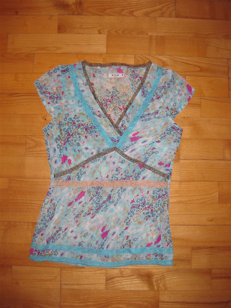 Billede 24: Turkis blomstret top fra Vila. Str. S. kr. Næsten som ny.
