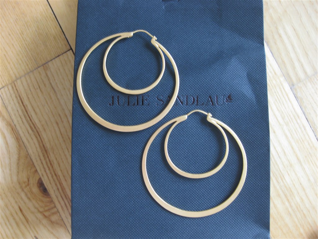 Billede 27: De populære dobbelte hoops fra Julie Sandlau i forgyldt sterling sølv. Helt nye og aldrig brugt. Nypris 1700 kr. Sælges for 1250 kr incl forsendelse som brev med indleveringsattest. Garantibevis kan medfølge, samt original Julie Sandlau smykkeæske og gavepose.