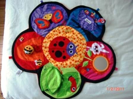 Den er rigtig god til børn der ikke rigtig gider ligge på maven og den kan også bruges, uden drejeskiven, som et legetæppe