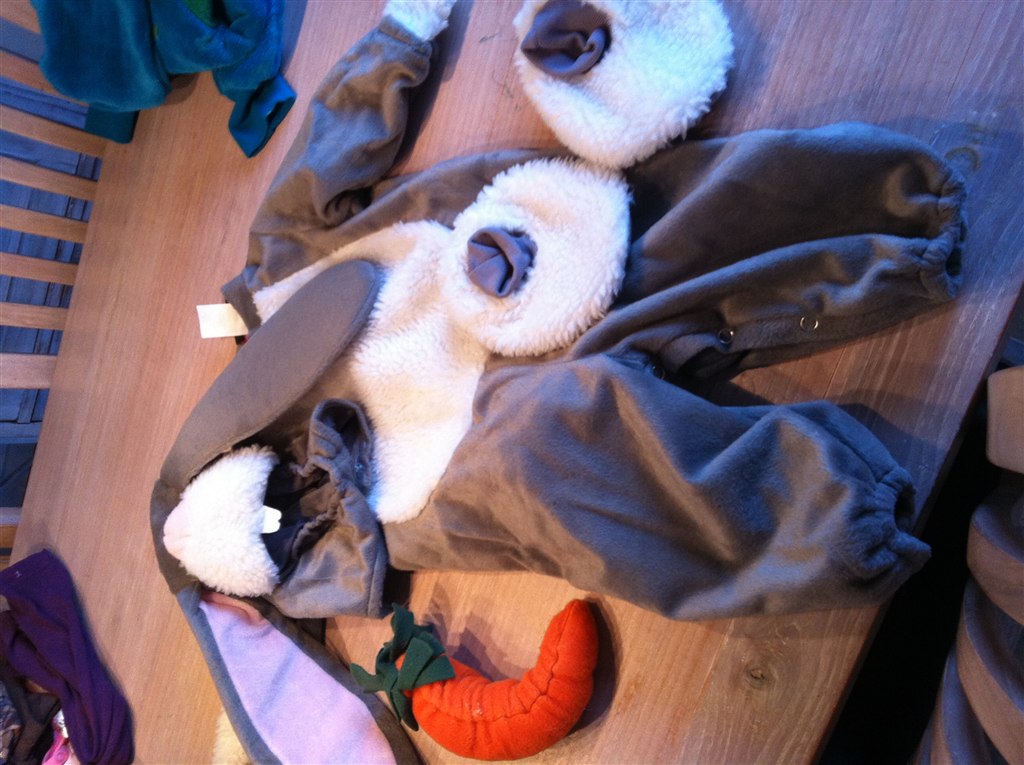 Maise86 skriver: Sælger min datters kostume fra sidste år. Super kvalitet. Det er en kanin med hue, dragt, fødder og gulerod. Kan åbnes i benene for nemt bleskift. Pris 200 kr inkl. porto. eller byd!