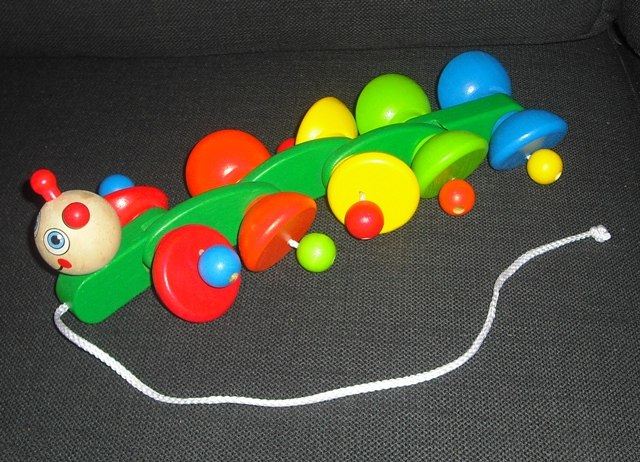1. Rangle/uro. Kan trækkes op så den spiller vuggeviser og har været et stort hit at have hængende på autostolen herhjemme.