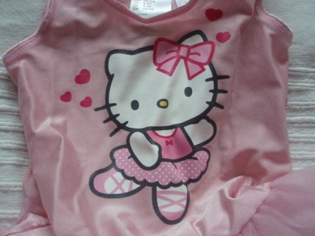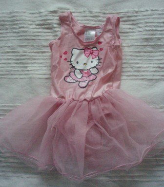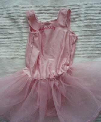 Sød gymnastik eller danse dragt med Hello Kitty på maven og en lille tylskørt. I rigtig god stand.