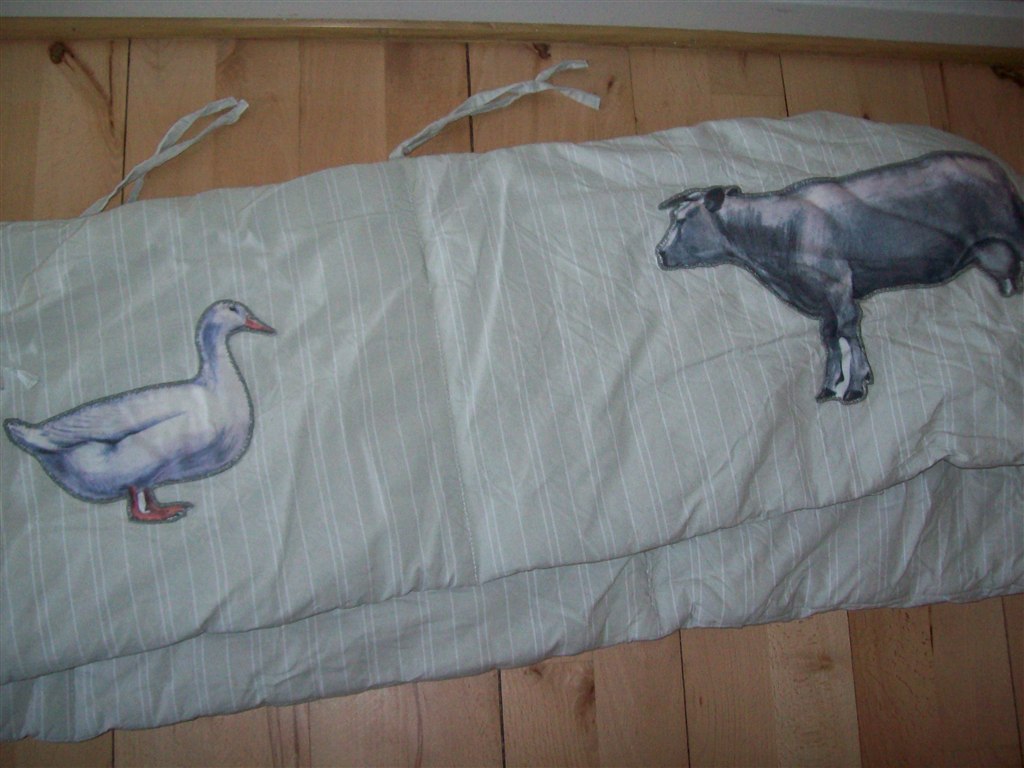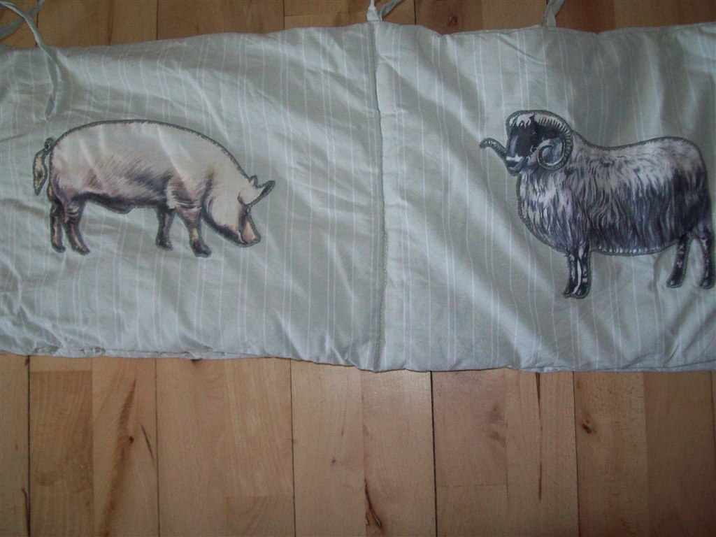 Den er ihvertfald brugt til en tremmeseng af standard str, men den er en del længere end en standard seng i mål - så den er nok beregnet til lidt af hvert